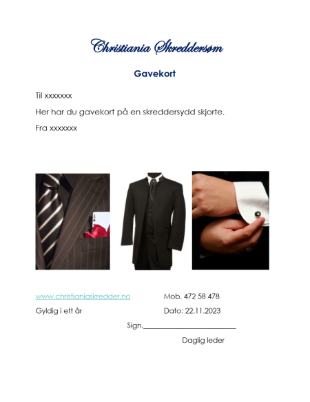 Du kan kjøpe gavekort spesifikt på en skjorte, en blazer etc eller bare et beløp.
