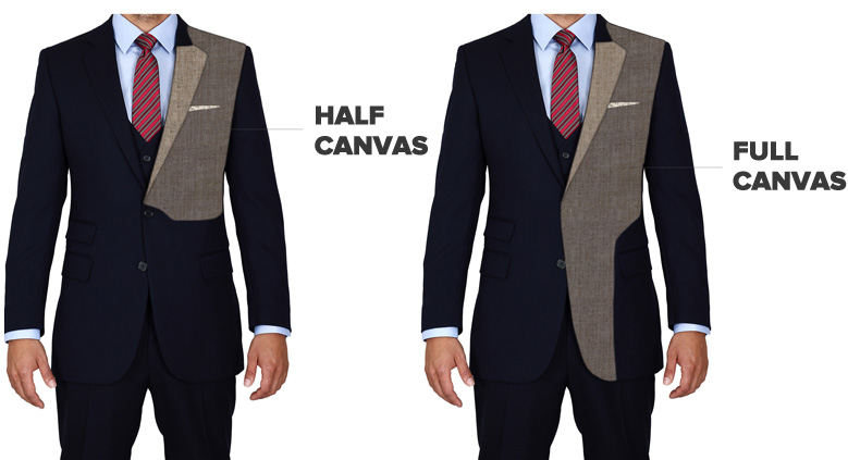 En viktig detalj mange overser er innmaten i jakken. I de fleste dresser er den limt ("fused") fast og limet løsner gjerne ved første rens. Standard i våre jakker er "Half Canvas", dvs det stivende mellomlaget er sydd fast og rekker nedenfor armhulen. "Full Canvas" vil si at innmaten går hele veien ned til enden av front. Koster 2500 mer pga mer arbeid og tid.